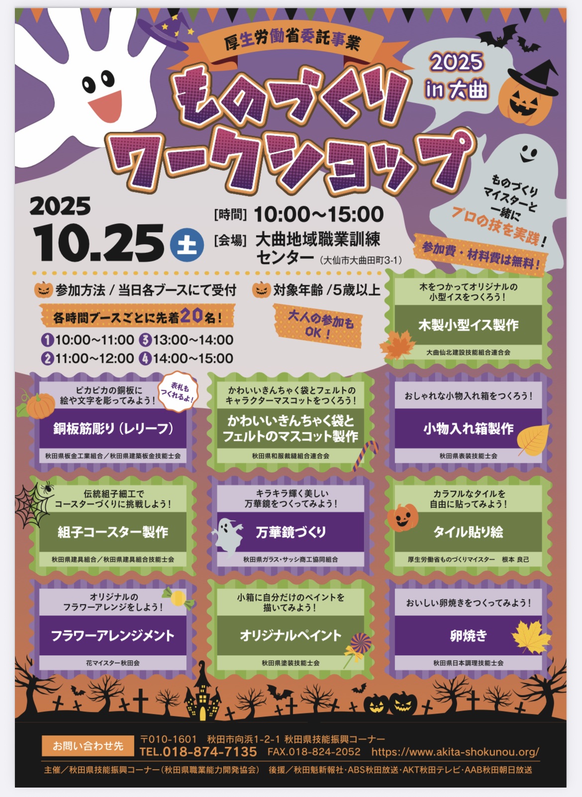 毎年恒例行事となりました「ものづくりワークショップin大曲」が今年も開催されます!